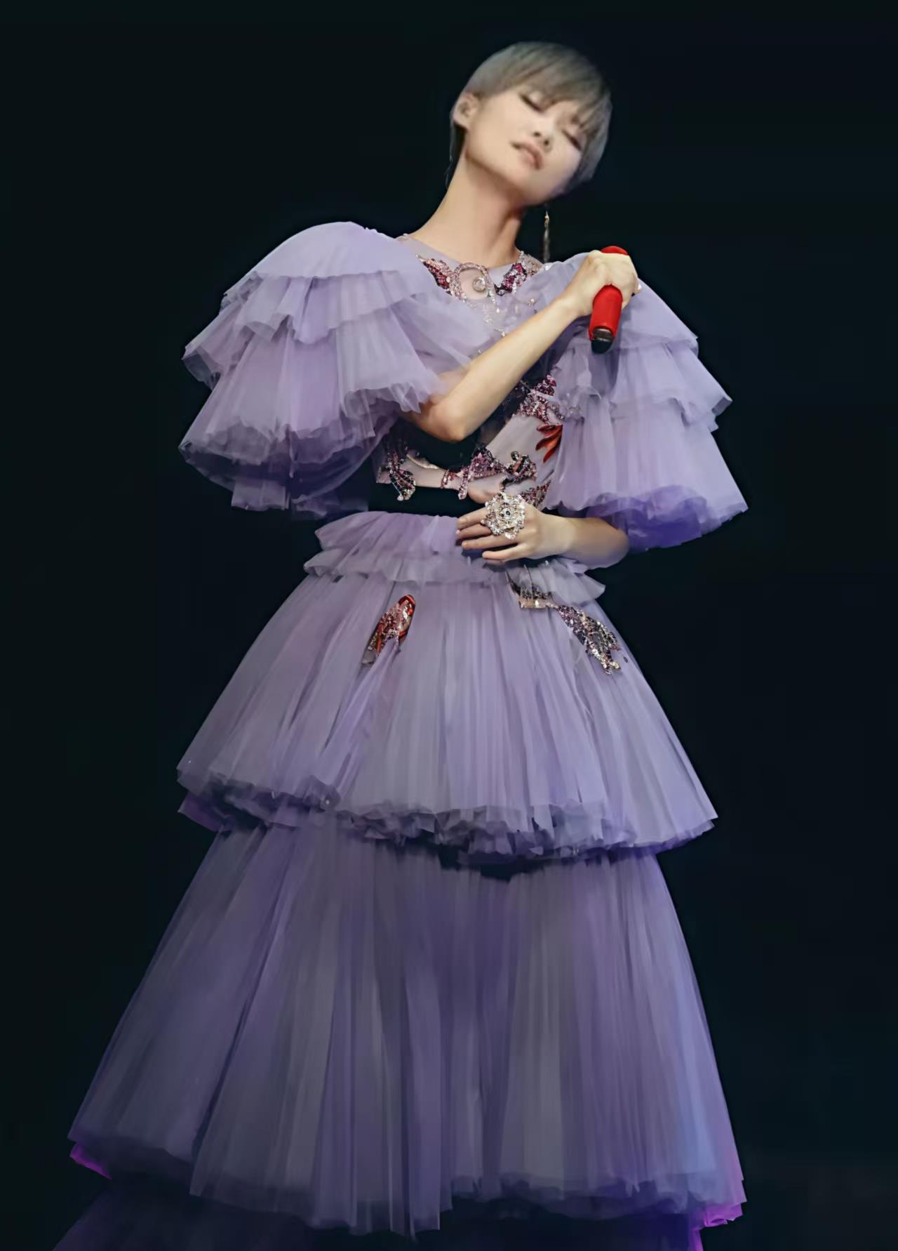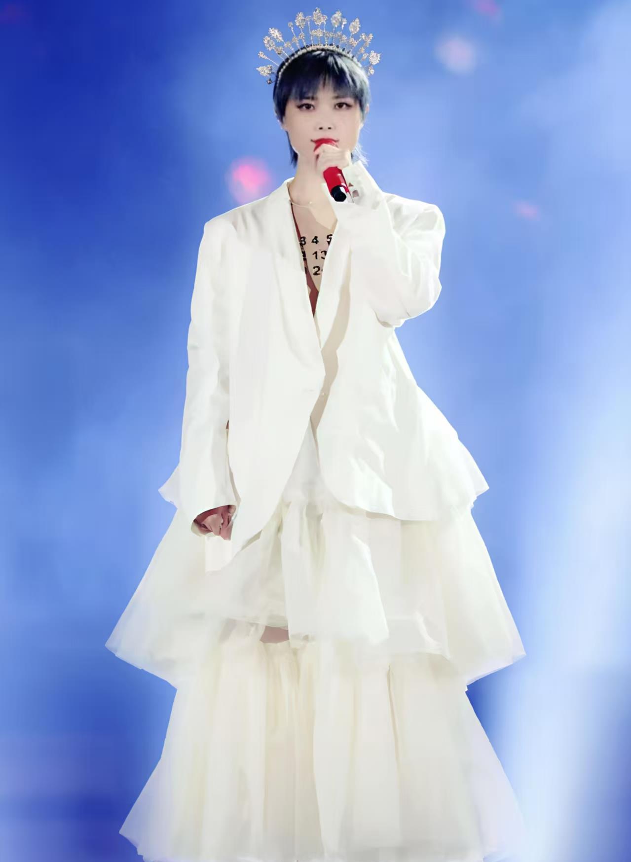 在《浪姐》的舞台上,她又一次以新形象出现——蓝色假发、抹胸连衣裙、妩媚的红唇。那是她喜欢的造型,即便仍有争议,但她已经学会不被外界声音左右。