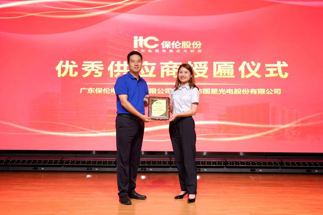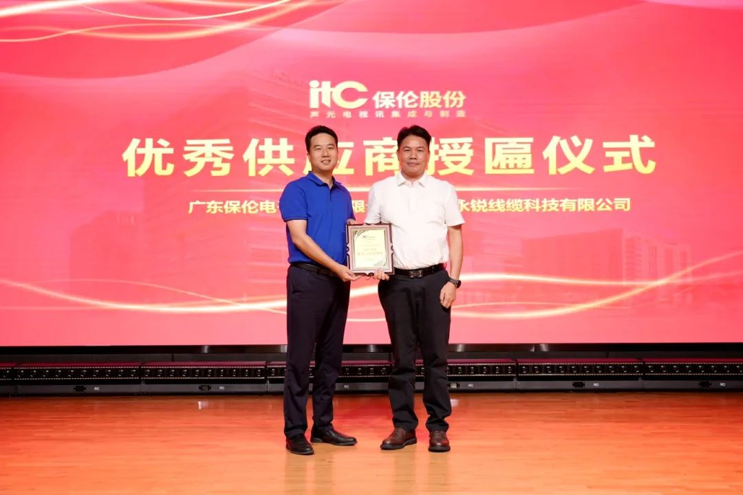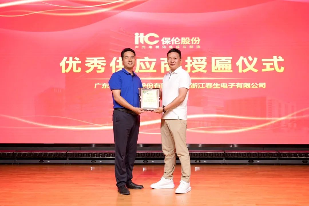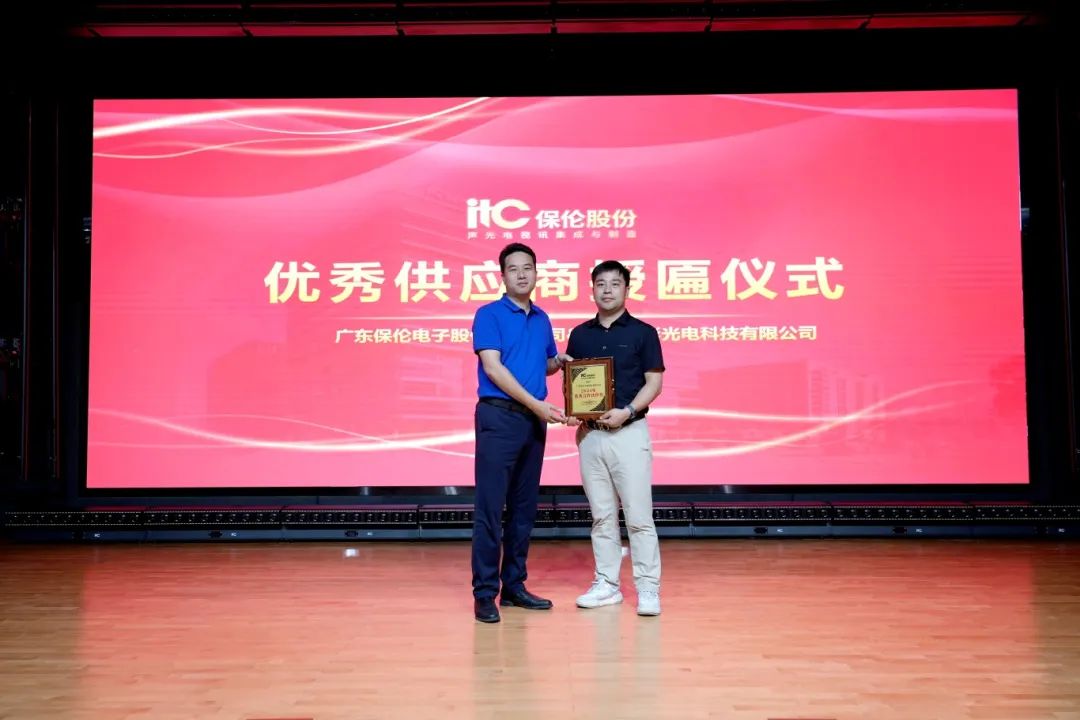 为表彰在品质、交付、创新等方 面表现突出的供应商伙伴,此次大会特别设置了 “2024年优秀合作伙伴奖”和“2024年优秀服务支持奖” 两大奖项,这既是对年度标杆的加冕,更是以荣誉为锚,锚定未来深度协同的新起点。其中佛山市国星光电股份有限公司、广州大彩光电科技有限公司、浙江春生电子有限公司、广东永锐线缆科技有限公司等27家企业,成功入选itc保伦股份2024年优秀供应商榜单。