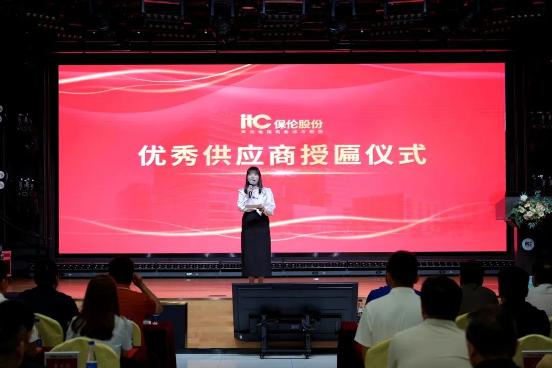 携手同行,续写华章。 日前,备受瞩目的itc保伦股份2024年度供应商表彰大会在总部隆重召开 。来自全国各地60余家供应商伙伴齐聚一堂,共叙合作情谊,共谋发展新篇。本次大会旨在表彰在过去一年中与公司紧密合作、共同发展的优秀供应商,进一步巩固合作关系,携手共创更加辉煌的未来。