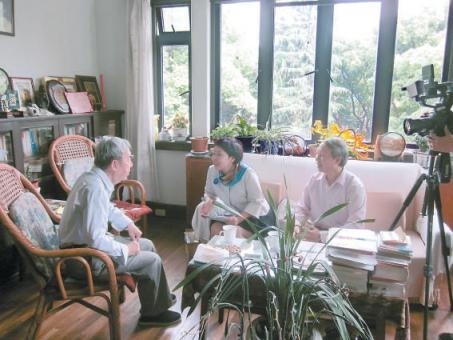 2015年6月11日,当年主持中国共产党上海难民工作的周克(左),向苏智良、金亚、王海鸥等讲述了饶家驹与中共地下党鲜为人知的往事。